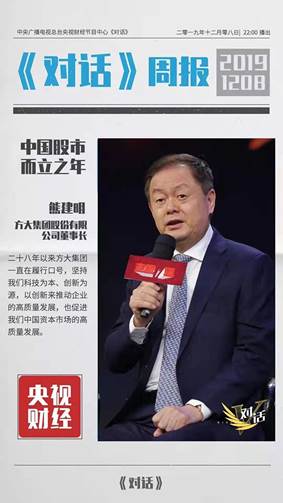 方大集團股份有限公司董事長熊建明作為深圳主板上市公司唯一代表參加節(jié)目,向全國觀眾分享方大集團的發(fā)展歷程。